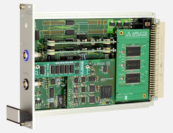 The AWG22 is a 22 bit Arbitrary Waveform Generator for medium-speed / high resolution waveform generation. The module combines an exceptional dynamic performance with a very high DC accuracy.
