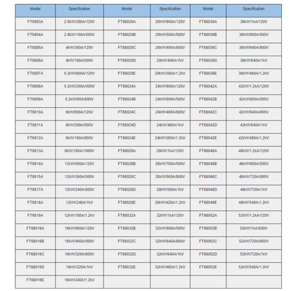 Voltage: 40V, 120V, 500V, 800V, 1000V, 1200V