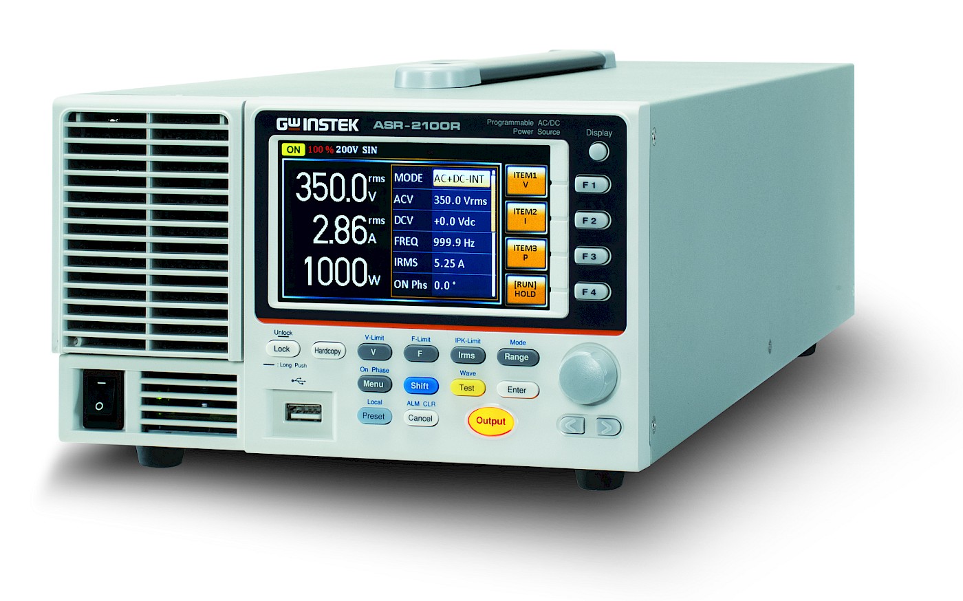 The ASR-2000 series, an AC+DC power source aiming for system integration or desktop applications, provides both rated power output for AC output and rated power output for DC output. Ten ASR-2000 output modes are available, including 1) AC power output mode (AC-INT Mode), 2) DC power output mode (DC-INT Mode), 3) AC/DC power output mode (AC+DC-INT Mode), 4) External AC signal source mode (AC-EXT Mode), 5) External AC/DC signal source mode (AC+DC-EXT Mode), 6) External AC signal superimposition mode (AC-ADD Mode), 7) External AC/DC signal superimposition mode (AC+DC-ADD Mode), 8) External AC signal synchronization mode (AC-SYNC Mode), 9) External AC/DC signal synchronization mode (AC+DC-SYNC Mode), 10) External DC voltage control of AC output mode (AC-VCA Mode). The ASR-2000 series provides users with waveform output capabilities to meet the test requirements of different electronic component development, automotive electrical devices and home appliance, including 1) Sequence mode generates waveform fallings, surges, sags, changes and other abnormal power line conditions; 2) Arbitrary waveform function allows users to store/upload user-defined waveforms; and 3) Simulate mode simulates power outage, voltage rise, voltage fall, and frequency variations. When the ASR-2000 series power source outputs, it can also measure Vrms, Vavg, Vpeak, Irms, Iavg, Ipeak, IpkH, P, S, Q, PF, CF, 100th-order Voltage Harmonic and Current Harmonic. In addition, the Remote sense function ensures accurate voltage output. The Customized Phase Angle for Output On/Off function can set the starting angle and ending angle of the voltage output according to the test requirements. V-Limit, Ipeak-Limit, F-Limit, OVP, OCP, OPP function settings can protect the DUT during the measurement process. In addition to OTP, OCP, and OPP protection, the ASR-2000 series also incorporates the Fan fail alarm function and AC fail alarm function.Accessories