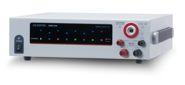 GW Instek presents a dedicated option, multiplex scanner box, for specific safety tester series. This multiplex scanner box, GSB-01/02, has a function that distributes the test voltage or current provided by the GPT-9800/9900/9900A series to multiple test points. Up to eight channels can be used for outputs on one scanner. Operator can conduct AC/DC withstanding, insulation resistance and ground bond test on test points depending selected scanner model. Furthermore, up to four scanners can be connected to the tester, allowing a maximum of 32 channels. These features ensure highly reliable and labor-saving for electrical and electronic equipment with multiple test points.