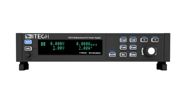 1U half rack, mini size IT-M3300 has mini size of 1U half rack and is able to output 800W. It has not only the high density but also the high resolution, accuracy, stability and etc. The output voltage can reach 600V and the output current can reach 30A. There’re 12 models for IT-M3300 series, with design of wide range output, with one unit, it can cover a wide range of application requirements. Module design, flexible combination IT-M3300, with module design, without additional spare parts, it can be stacked as easy as the toy bricks. With IT-E154 rack installation kit, users can easily install one or multiple instruments into a standard 19-inch cabinet. High energy recovery efficiency IT-M3300 has energy recovery function, which can feedback power back to local AC grid. The regeneration efficiency can be up to 90%, which greatly reduces the user's electricity cost. It also avoids the using of cooling systems and reduces noise. Electricity accumulation, high energy saving effect IT-M3300 uses power electronic conversion technology to recycle the output energy of the power supply under test under the premise of completing the test power experiment. Through the internal high-speed voltage and current sampling, the user can directly view the current total amount of feedback on the instrument panel. The IT-M3300 is equipped with temperature measurement function as standard. With an optional temperature sensor, you can also directly view the external measurement temperature. Multi-channel independent control, maximum 256 channels IT-M3300 series is provided with independent multi-channel design.The channel sequence will be displayed when it combines to be a multi-channel electronic load system. The user can control each unit independently by GUI software when connecting the communication interface of one unit with PC. Each channel can be operated separately. IT-M3300 series supports maximum 16*16 channels. One 37U rack contains 64 channels. The user may test DUT with different power ranges by parallel connection, making tests more flexible and device usage more efficient. Battery simulation Battery charger will monitor the voltage of battery after battery charger is connected to battery, If the connection is correctly, the battery charger comes into charge state. In Battery Sim mode, users can set analog voltage of battery, and can output low current, to simulate battery state. It can satify working demand of battery charger, which can be applied to discharging test of battery charger. Multiple operation mode IT-M3300 provides CC/CV/CP/CR four basic operation mode. IT-M3300 also provides CC+CR/CV+CR/CV+CC/CC+CV+CP+CR four combined operation mode, which can be applied to the test requirements of various occasions. Battery discharge test The battery discharge function of IT-M3300 allows you to proceed the discharge test of battery under CC mode.3 cut off conditions can be set, including voltage, capacity and discharge time. When any of the three conditions are met, it will automatically stop the test. The battery voltage, discharge time and discharged capacity can be monitored during the test.Options & Accessories