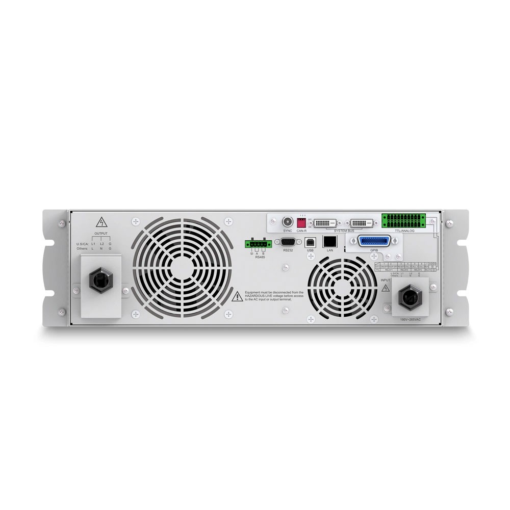 This is a high-precision, programmable AC power source with switching mode and single-channel output. It uses high-speed DSP + CPLD control, high-frequency PWM power technology and active PFC design to provide a stable AC / DC output.