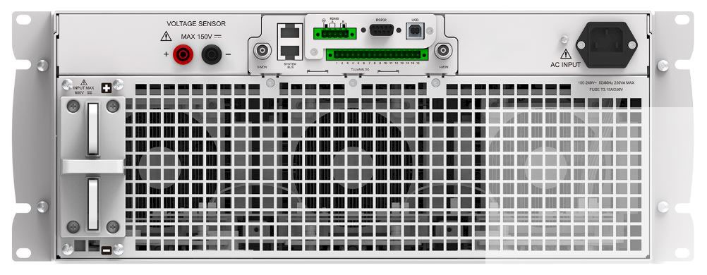 This series of programmable electronic DC loads with high power density offers three voltage ranges 200V / 600V / 1200V. Supports the 4 basic operating modes CV, CC, CR and CP as well as the 3 complex operating modes CV + CC, CV + CR, CR + CC. Full protection including OCP, OPP, OTP, over-voltage and reverse alarm.