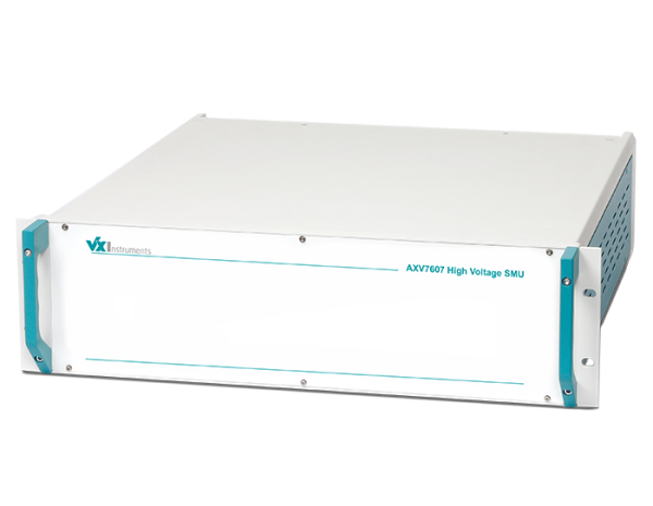 The potential-free high-voltage SMUs of the AXV family can output regulated DC voltages or voltage pulses in the range from -1,500 to +2,500 V. The signal curve is very linear and is characterized by very short rise and fall times. The extremely fast regulation prevents the output signal from overshooting, which enormously shortens test times. With the integrated measuring units for current and voltage, current and voltage can also be measured on the device while testing during a pulse. Due to the high resolution of the current measurement in the pA range, in connection with the active guarding outputs (avoidance of leakage currents in the cabling), the device is ideally suited for the measurement of leakage currents.Options